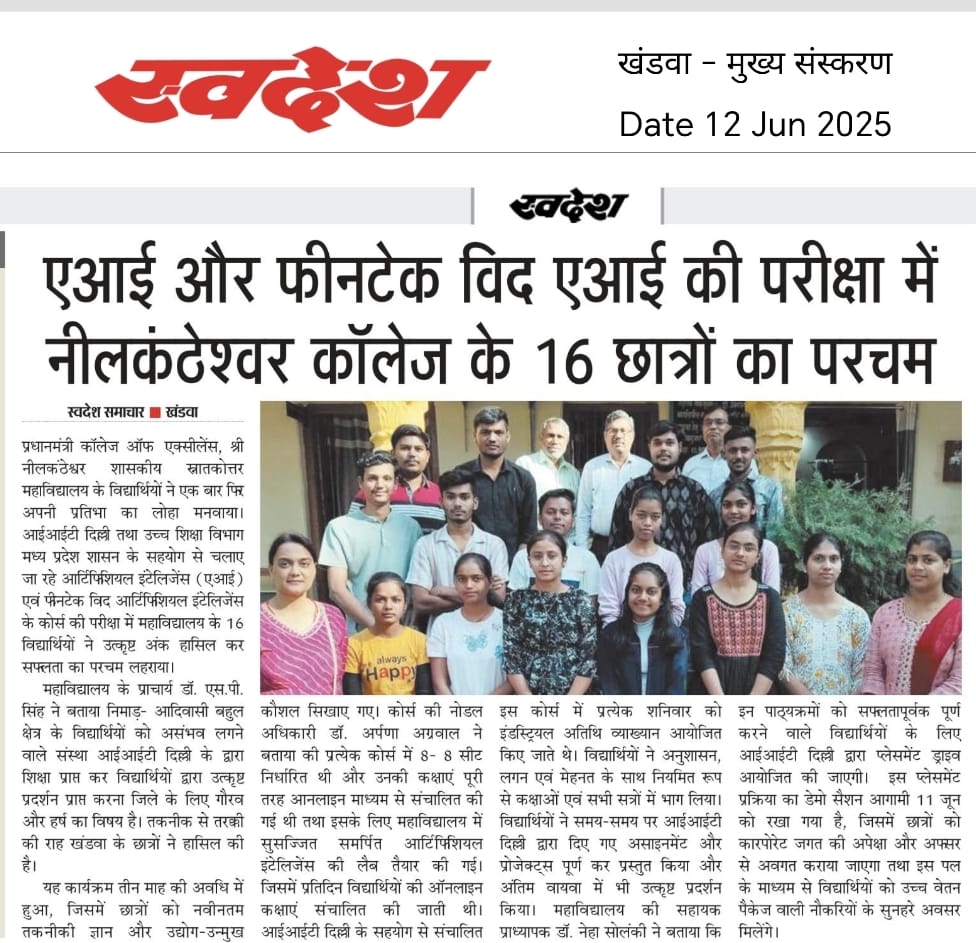 Contents Provided, Updated & Maintained by: The Principal, Mr. Praveen Patil , Head of Deptt. Computer Science Shri Neelkhantheshwar Government P.G. College Khandwa [M.P.] |